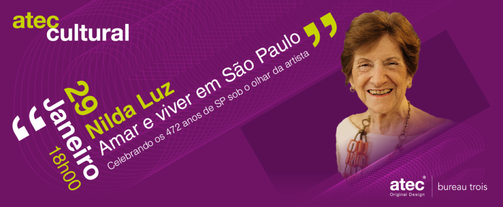 Com a curadoria da Bureau Trois e o tema “Amar e viver São Paulo: celebrando os 472 anos de SP sob o olhar da artista”, a artista Nilda Luz conduz no alto de seus 90 anos recém completos, uma reflexão poética e visual sobre a cidade, explorando suas camadas, vivências e sentimentos construídos ao longo de quase cinco séculos.