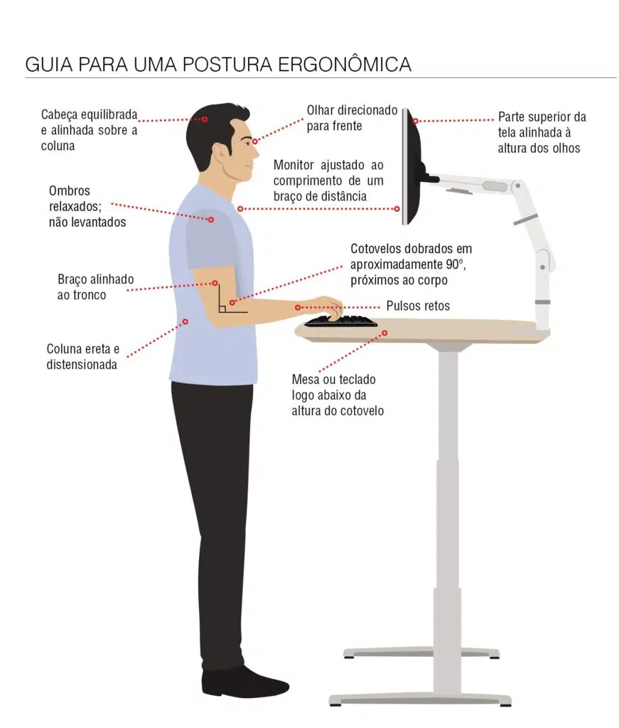 7- Se você trabalha por muitas horas, estudos recentes comprovam a importância de permanecer algumas horas em pé. Para isso, hoje existem as mesas que podem ser elevadas sem esforço para o trabalho em pé.