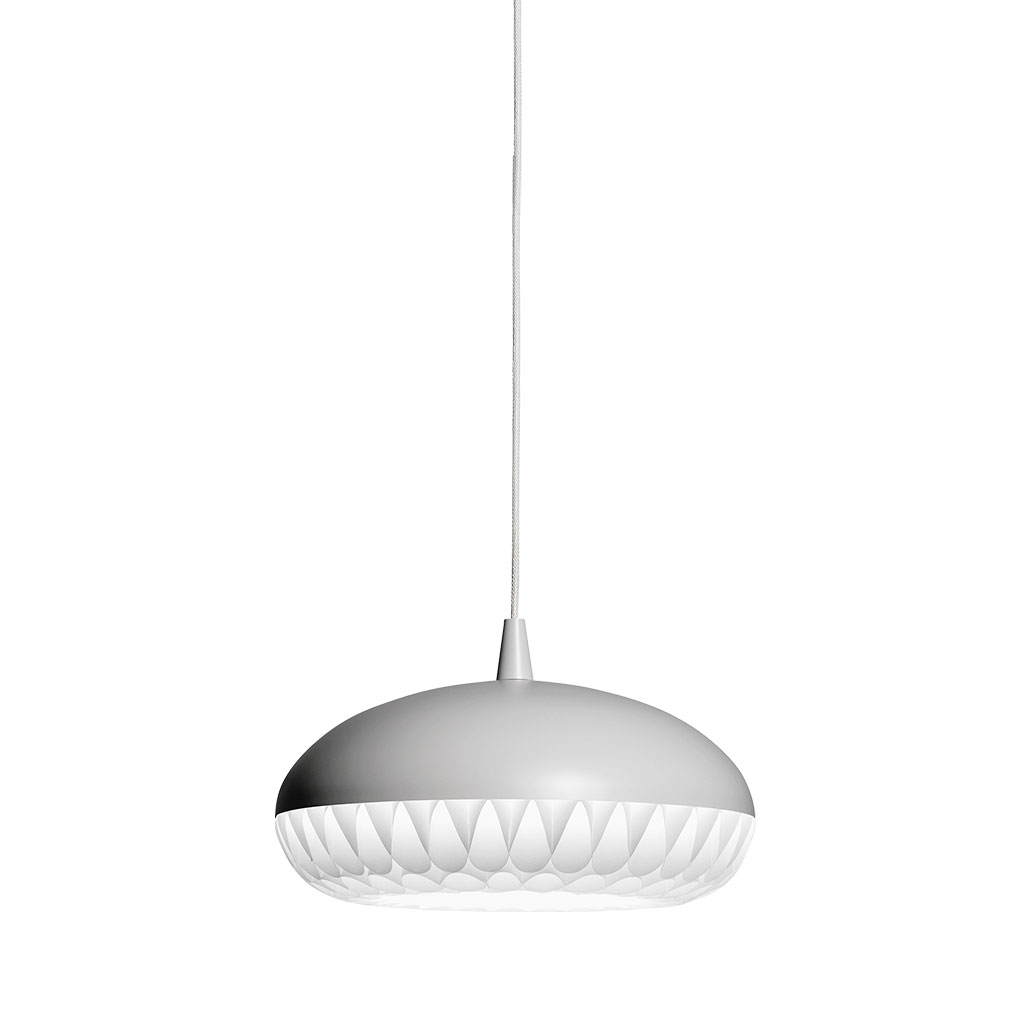 Aeon Rocket de Morten Voss é uma série de belos, harmoniosos e marcantes pendentes. Este é o primeiro pendente na história a tirar o máximo partido das qualidades luminosas do metal e do polipropileno num único modelo. A simples tonalidade superior assegura muita luz para baixo, enquanto a tonalidade inferior em polipropileno ilumina e difunde a luz. A tonalidade inferior em gauzy consiste em 8 bandas longas, cuidadosamente tecidas para criar aberturas redondas, permitindo que a luz passe sem obstáculos. Pendurar a lâmpada a uma altura elevada permite tirar vantagem do difusor correspondente para evitar que a fonte de luz seja visível.