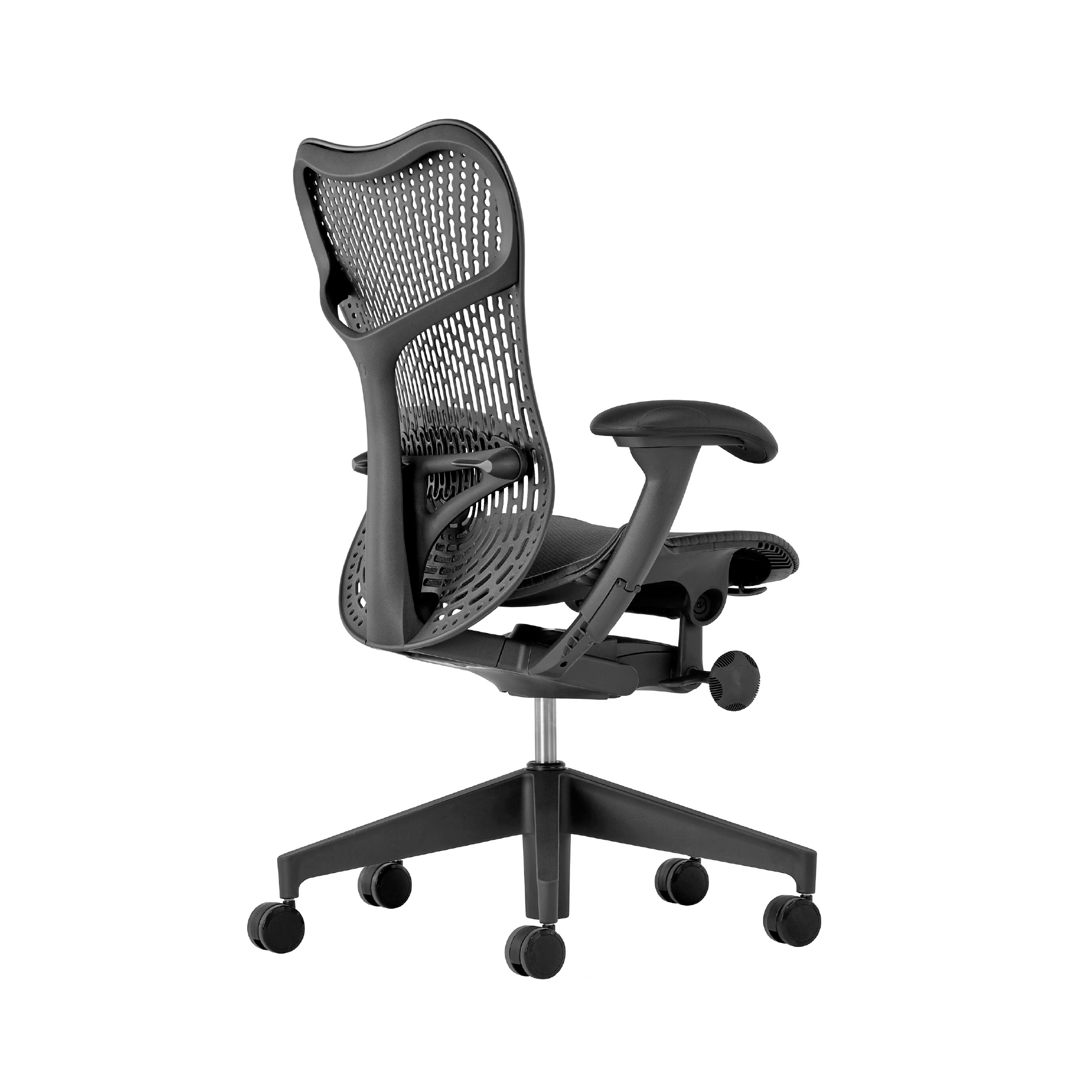 - Ajuste ergonômico personalizado: Com ajuste de tensão de reclínio e altura do assento, a cadeira Mirra 2 permite que o usuário personalize o suporte para a coluna, garantindo conforto adaptado às necessidades de cada pessoa.