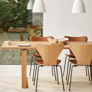 A Series 7™, criada por Arne Jacobsen para a Fritz Hansen em 1955, é uma das cadeiras mais icônicas da história do design. Feita em lâmina moldada de madeira, ela combina elegância minimalista, leveza e um conforto surpreendente. Sua silhueta reconhecível e versatilidade estética fazem da Series 7™ a escolha perfeita para salas de jantar, escritórios e ambientes contemporâneos que valorizam design puro e funcional.