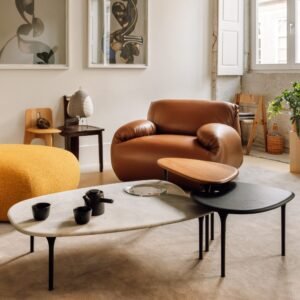 Inspirada na ideia de ilhas que se movem, a Cyclade Collection é um conjunto de mesas de alturas e formas distintas, criada pela Herman Miller e pelo designer Gabriel Tan.