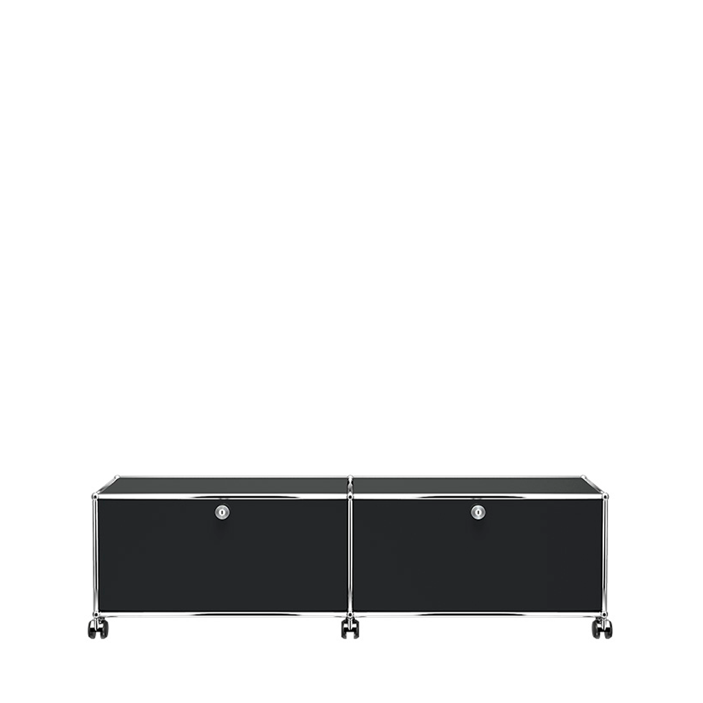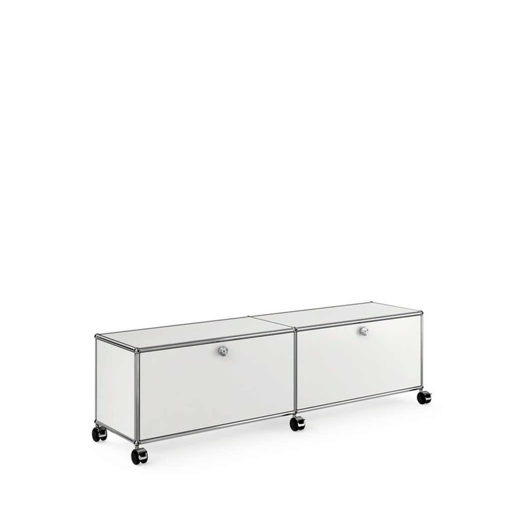 Com dois módulos clássicos, e rodízios, este rack USM oferece requinte a sua sala de estar.